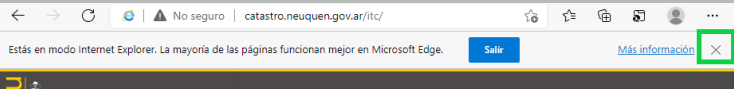 Luego, al intentar acceder al ITC aparece una barra debajo de la url, se debe cerrar con la cruz. No deben presionar "Salir" ya los saca del modo internet explorer y no se podrá utilizar el ITC.