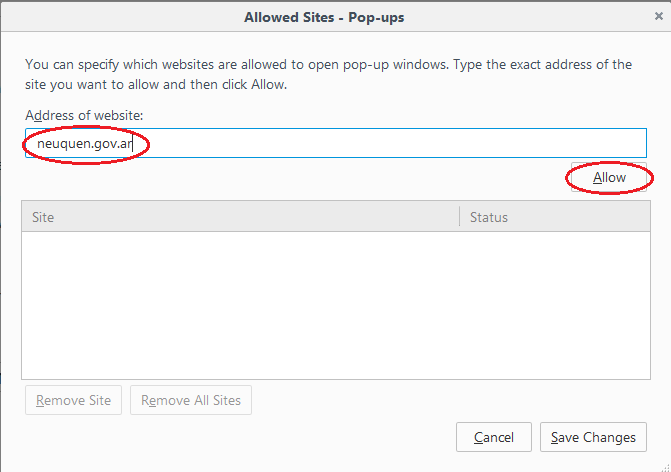 Habilitar el sitio "neuquen.gov.ar".