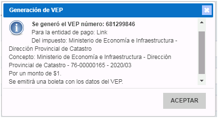 Luego podrá pagar el Volante Electrónico de Pago (VEP) correspondiente desde su Homebanking. El comprobante es válido como constancia de pago.